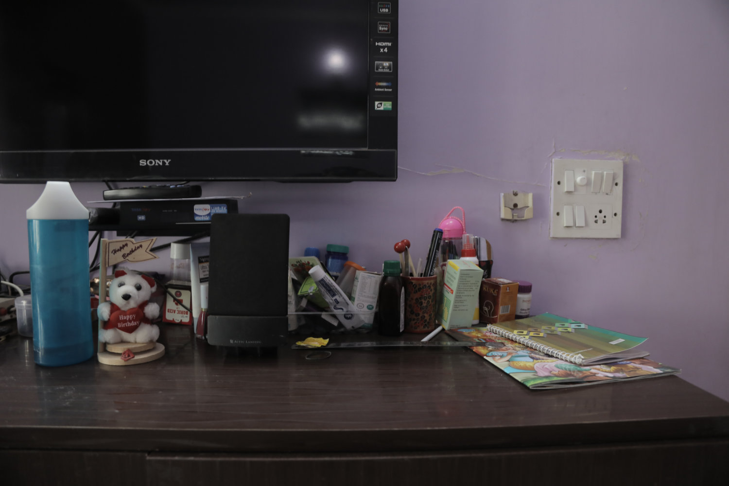While working, they lived in government accommodation. Now that they are both retired, they own a flat in an apartment complex of ninety units built by a cooperative society that bought the land from the Delhi Development Authority. The flat is a three BHK (3 bedrooms, 3 bathrooms, hall/living room and kitchen). If they did not own their apartment, rent would be about ₹ 25,000/month plus maintenance. W just pays the ₹2000 maintenance fee.