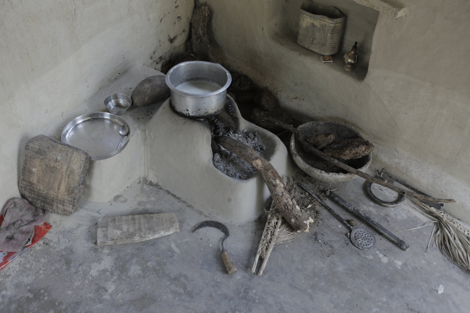 L’s wife, W is apprehensive at the attention this project might attract. L’s house is right at the front of a newer part of the village During our first meeting, L was in his living room busy entertaining visitors who dropped by in a steady stream while his wife, W did the dishes. She washes them using a rag and the ash left by cow dung cakes - which is used for fuel. Plastic bottles of water stood on tables and were draped with cloth to keep the water cool. Together, they have two sons and a daughter. Their youngest was applying henna to his hair and his daughter was romping around, making the best of her time off from school. We sat on plastic chairs and mats stitched together from gunny cloth. W’s older son has left home for work, and she is worried about her younger son who does not seem interested in school. She does not want him to have to resort to becoming a farmer, which is not very lucrative. She tells me, “Aap toh padh likh gaye toh gao mein naukri karke ghoom sakte hain [you are educated so you can roam around villages as part of your job]”.