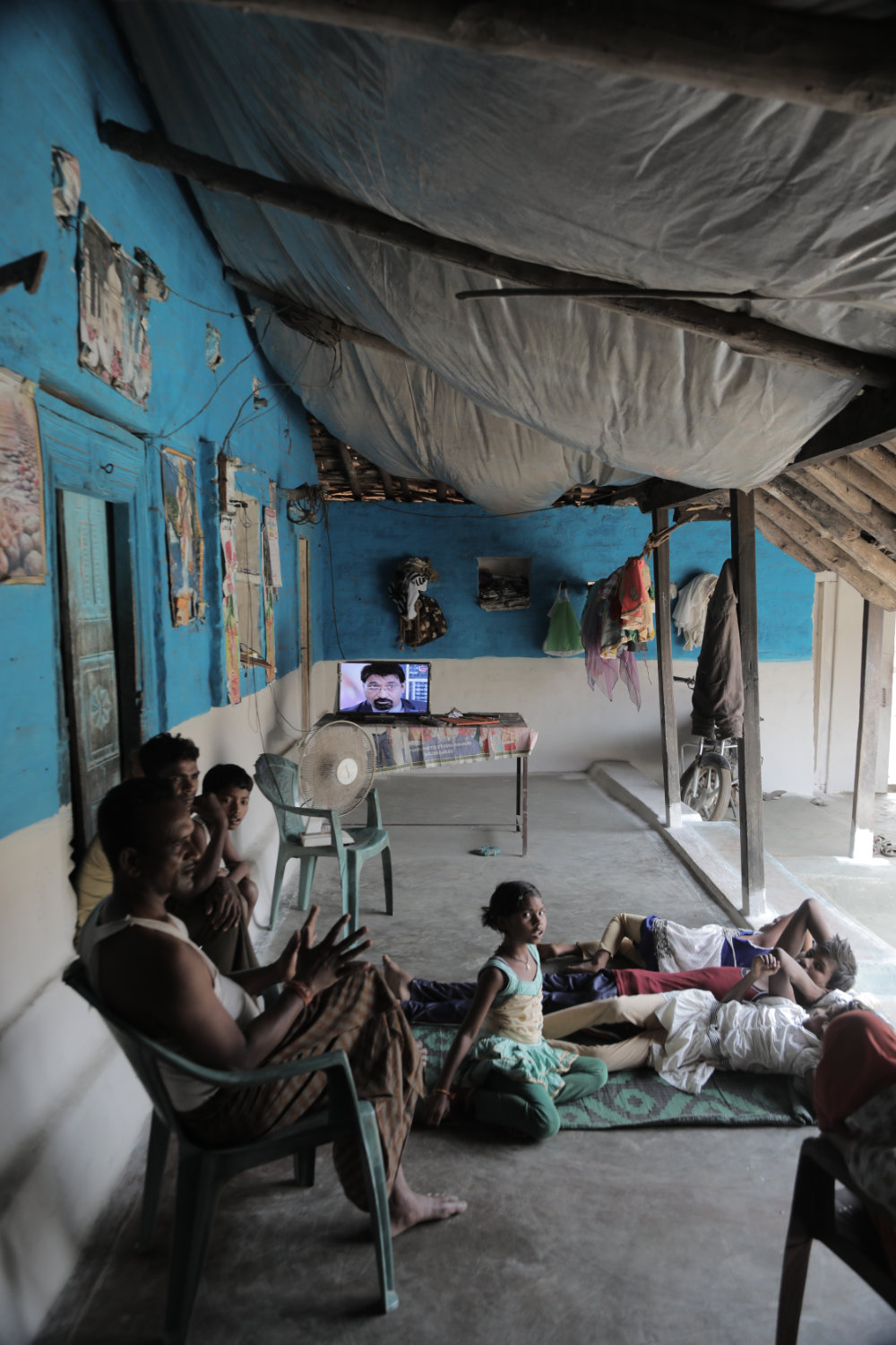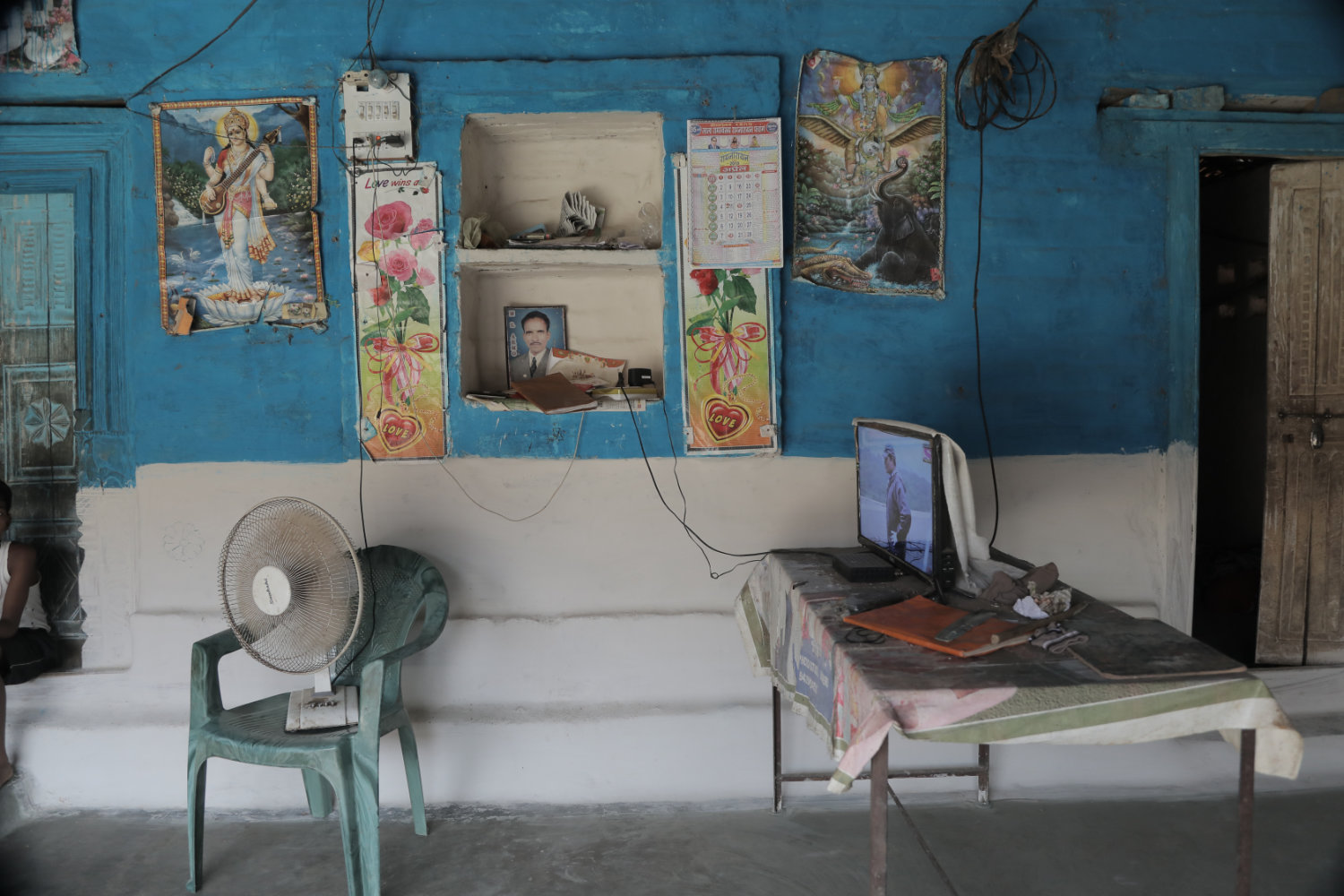 When we first saw him, R was lying on his cot just inside the front door and four or five children lay watching a Bollywood film on a mat on the floor by him. A table-fan sat fanning the entire group.