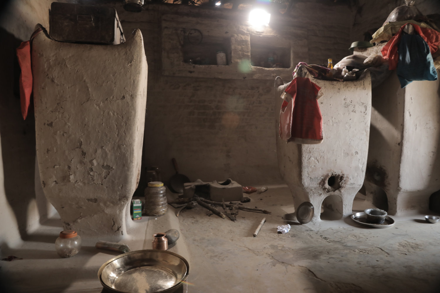 There was a thin cluster of jackfruit, hibiscus and guava trees in the courtyard of the house and right at the entrance stood a jhhaad (tree) of neem. The front yard was also used to wash dishes and was furnished with a rope bed (charpai) for when people want to sit in the open. , N lived with her husband, son and mother’s brother in the house her parents built, who dies several years ago.. Her husband’s sister (bhabhi) and her family lived across the street from them. N had buffaloes, bulls and cows and her house was one of the larger ones in the village. Her son, who resembled his father very much, spent his days working in the neighbouring fields and jungle. Foraging for raw materials was a common practice among the villagers and trees like mahua gave them fruit and other plants supplied fodder for cattle and goats. They used timber to build houses, make bricks,and as fuel. N told us that because of a shorter monsoon they had run out of wheat husk for the cattle and was feeding them corn husk instead. Despite this symbiotic relationship with the jungle, villagers appeared wary of signalling over-reliance to the government and making it take any action against them. Quite a few people mentioned that the government was providing gas cylinders to people to wean them away from the jungle, but it doesn’t seem to be working — nearly all the kitchens we visited seemed to be using wood fired cooking stations.