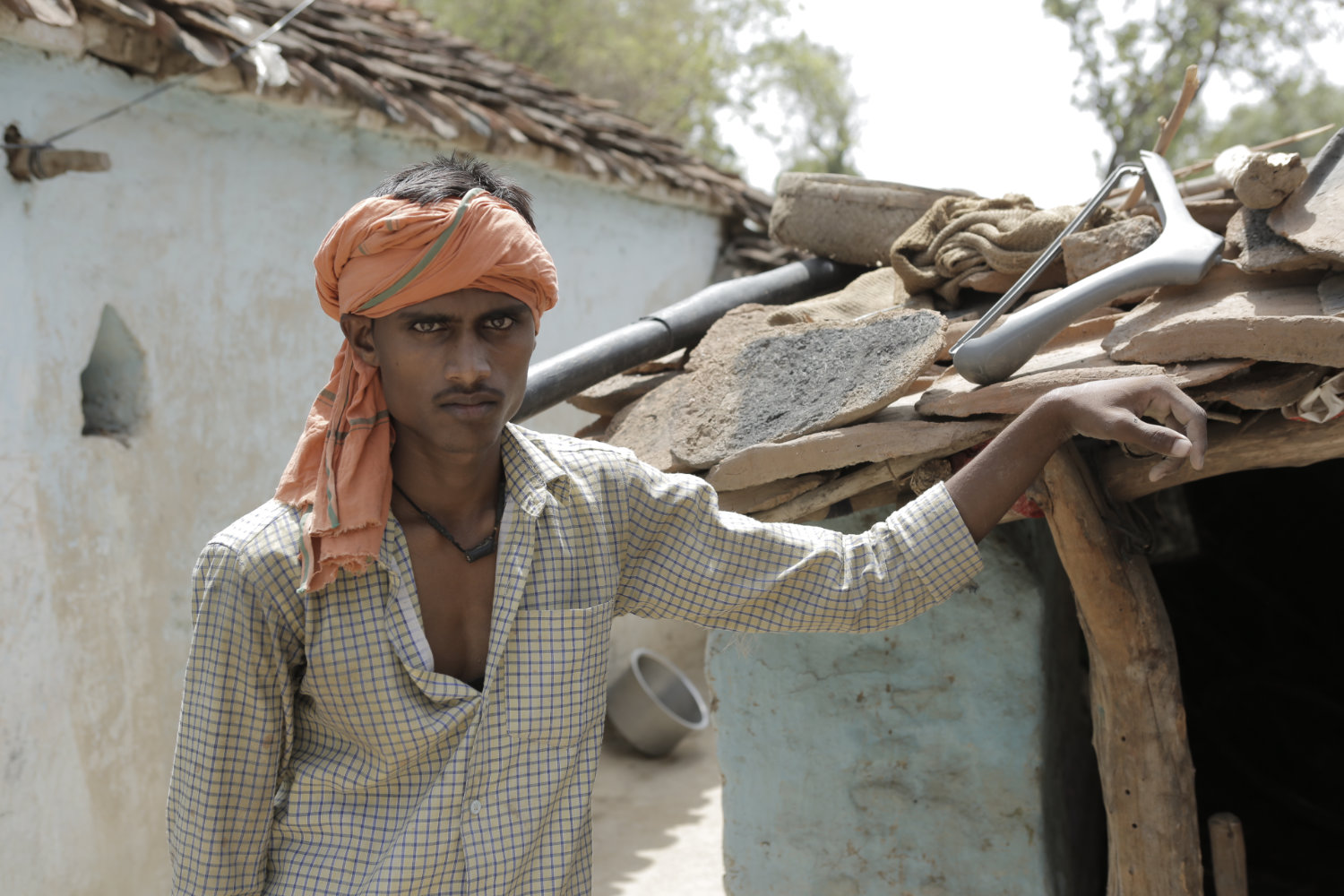 When we met M and his family, they were busy fixing a storm drain. M has been getting a more or less steady stream of work in the village via a national employment scheme called MNREGA. M lived with a large family: his old father, brothers and their wives and children, M’s own wife and children, and a couple of healthy looking buffaloes. Some of the children even had children of their own. They all lived together in a house along the main road of the new part of the village. M’s mother carried around with her a plastic bag of tobacco. One of her great grandsons, a toddler, screamed and pounced at her because he wanted to mix the tobacco for her himself, and everyone laughed.
