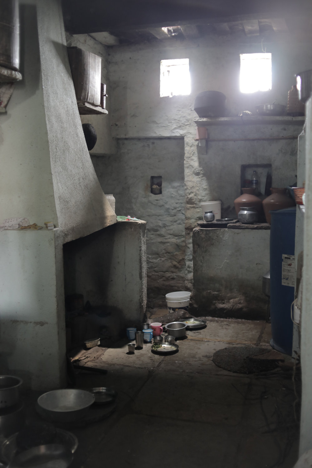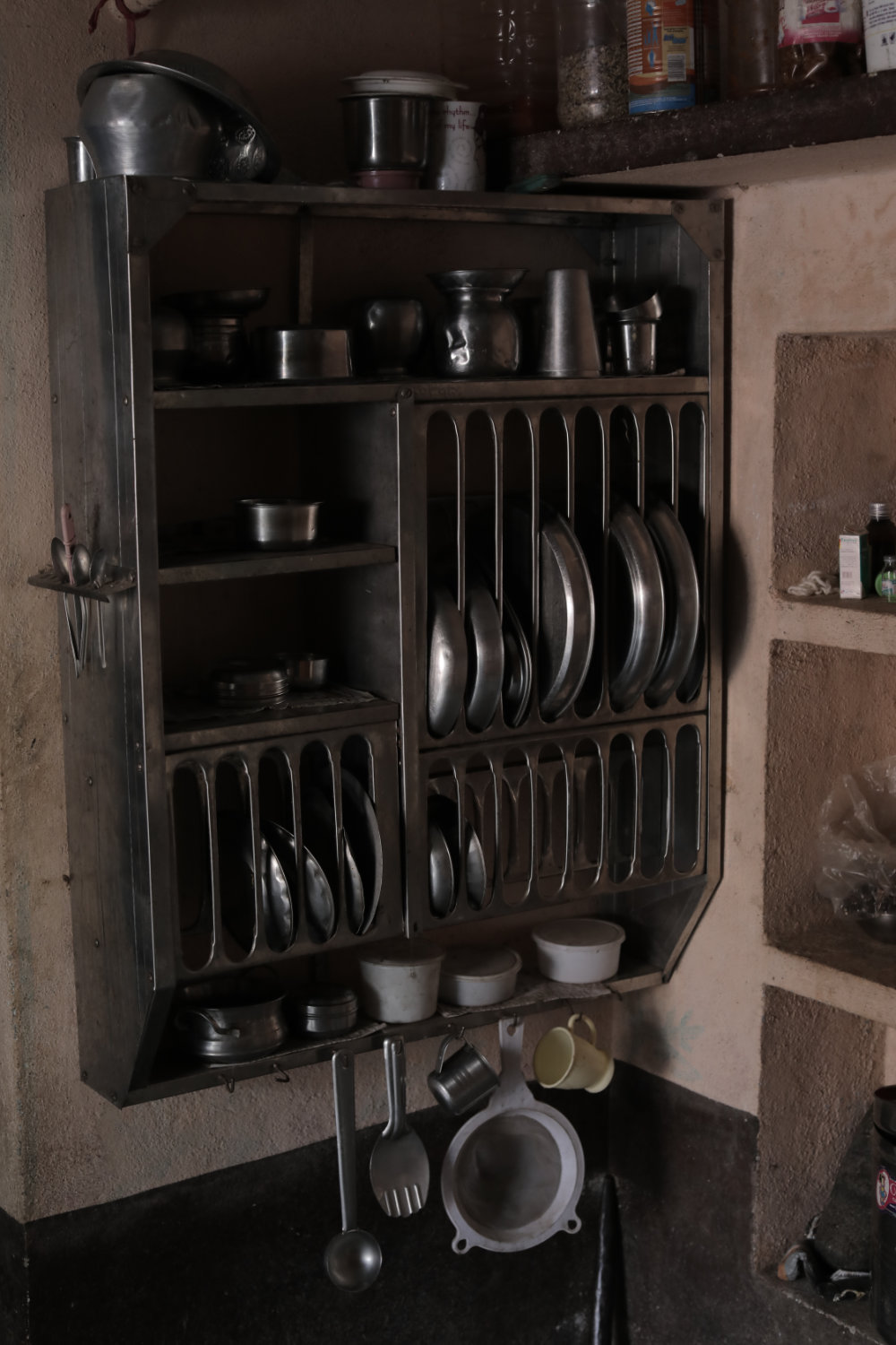 V’s house was inside a compound with six other houses. All families living in the compound were devotees of Shiva, and lived near a temple. V built the house ten years ago and still had some debt left over from his expenses. V, his wife and one of his daughters worked as coolies carrying luggage, and leave home very early for work. They had two cows which provided them with extra milk which they sold to the local milk cooperative, and an acre of land on which they grew lentils and wheat. V and his wife also took orders for food to supplement their income.