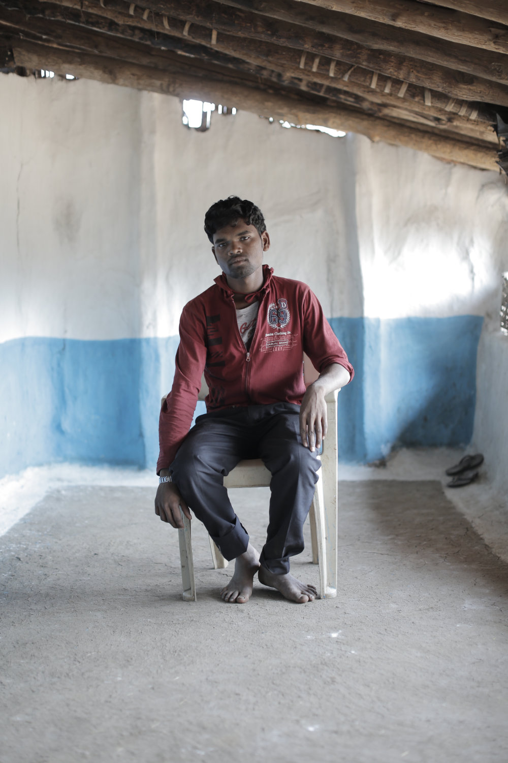 The walls of his house were painted white and decorated with designs in blue; in tribal cultures, his son explained to us, tree-like designs painted in blue signify marriage. The family generally re-painted the house once a year. Two of his sons got married recently and had babies, but one of the babies was displaying symptoms of malnutrition. Three of his sons worked at a factory manufacturing rubber parts for cars, one attended the local Ashram-shala, and another one had passed an exam for employment at the local police station. All his children visited home frequently whenever they feel homesick or have days off.