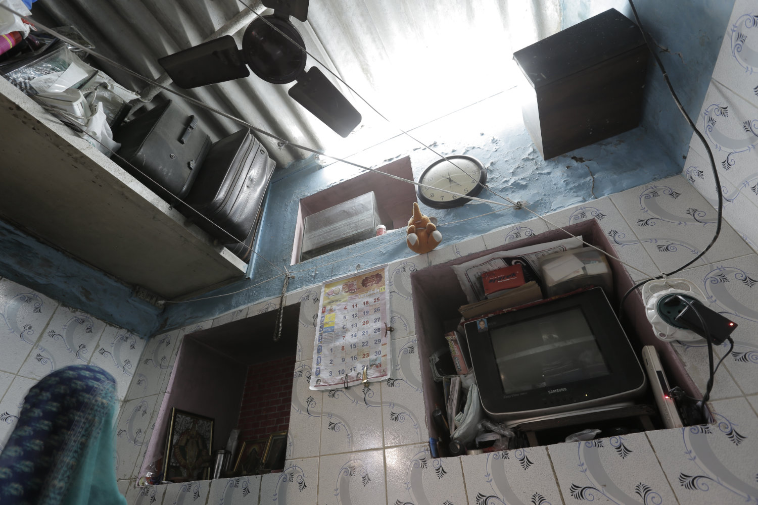 His house was the only house in their neighbourhood which did not have a bathroom attached to it, but R’s wife had made a makeshift area for showers just by the front door where there was a small drain, and the family used the communal toilets. Most other houses had an upper floor serving as a second room with a bathroom, but because of rising costs of construction R decided not to have an extra floor built.
