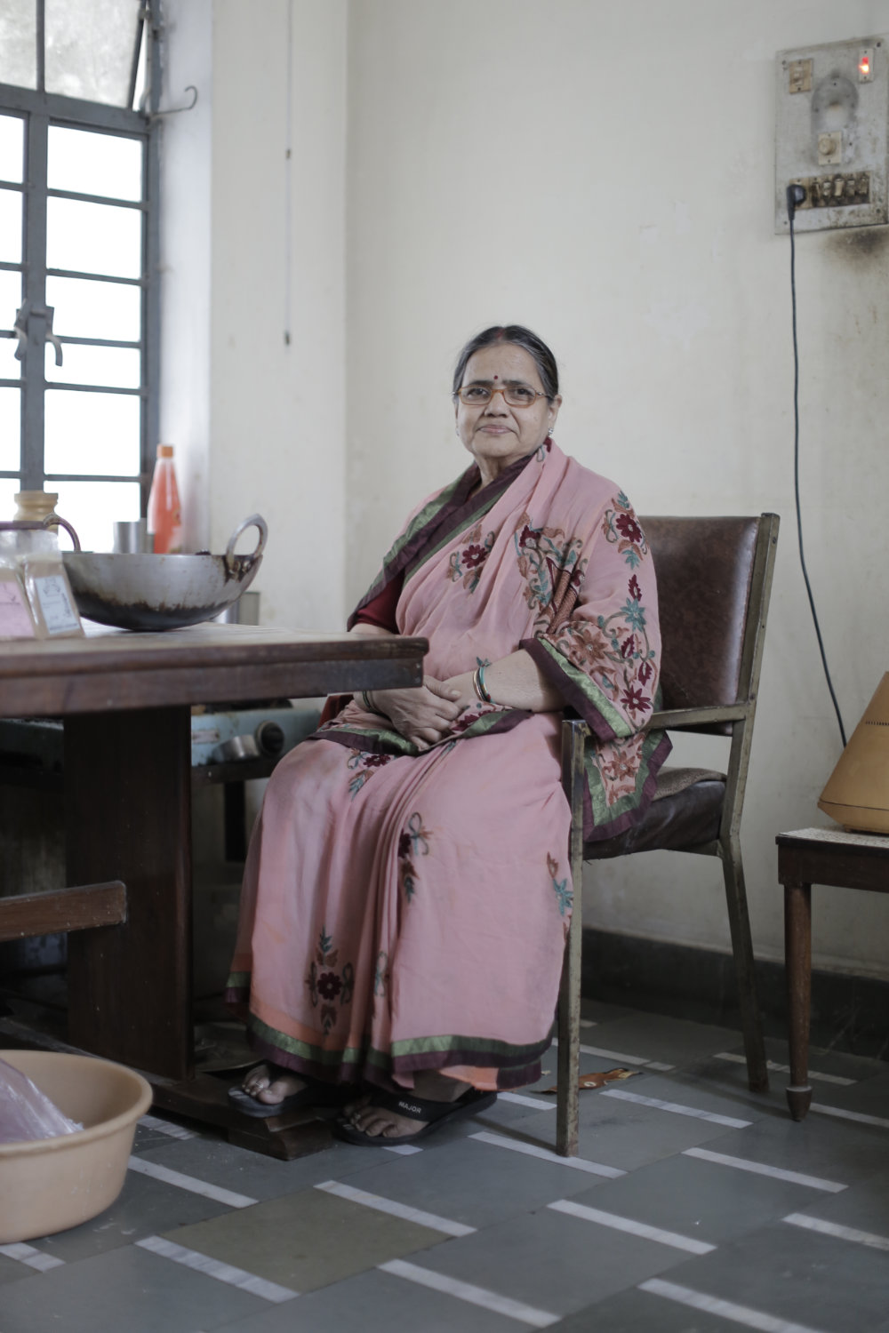 It took us a while to locate the house. We spent a good 20 minutes, probably more, walking in and out of the narrow lanes, looking for house numbers. When we found the right house, we saw a low compound wall with a break in the middle to accommodate an iron gate. The concrete house was designed in a way common to Hindu houses; multi-storied, not overly ornate, but very large. M’s daughter-in-law, T, answered the door in a simple cotton Salwar Kameez with a dupatta draped over her shoulders and led us to another low iron gate which opened into a small courtyard dotted with money plants growing in the pots which lined the compound wall. A few more steps past the courtyard led us into the first room of the house, which was M’s office and where he ran his legal practice from. The room was simply furnished with a large office table and three chairs for clients.