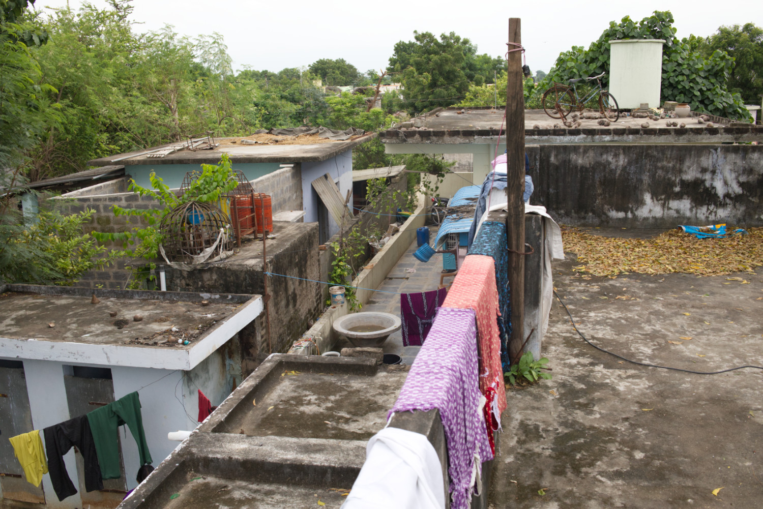 L lived alone with his wife, and for the time being while he was home on holiday, his youngest son. His daughter had recently got married, his oldest son lived in a nearby city for work, and his younger son - the one home on vacation - was posted to a distant state as a constable. They also had an overprotective dog who kept a beady eye on us the whole time we were there. L was a farmer and although he owned some land, he had not built his own house and so rented a two bedroom house for himself and his wife. L relied on renting land for his farm work as well, and had rented two patches of land 4acres and 1.5 acres large and was growing squash, ridge gourd, drumstick, snake, chillies, and sweet corn.